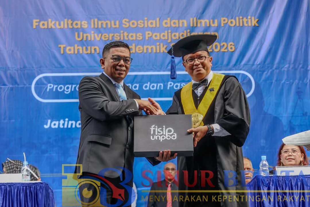 SINURBERITA.COM || JATINANGOR – Aula FISIP Universitas Padjadjaran, Jatinangor, dipenuhi semangat para mahasiswa baru yang tengah mengikuti PKKMB Tahun Akademik 2025/2026. Dalam Sidang Terbuka Senat FISIP Unpad, Gubernur Banten Andra Soni, yang juga mahasiswa program doktoral (S3) FISIP Unpad, hadir memberikan orasi motivasi.