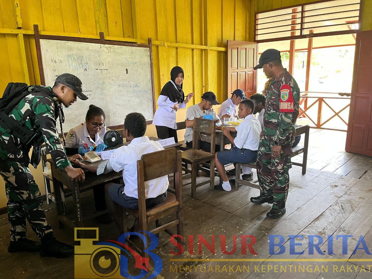 Sebagai wujud dukungan terhadap program pemerintah serta bentuk kepedulian satuan kewilayahan terhadap kesehatan generasi penerus Bangsa, Babinsa Koramil 1710-06/Agimuga Serda Herman melaksanakan pendampingan Nakes pada kegiatan cek kesehatan gratis kepada pelajar SMPN Kiliarma, Distrik Agimuga, Kab. Mimika, Selasa (07/10/2025).