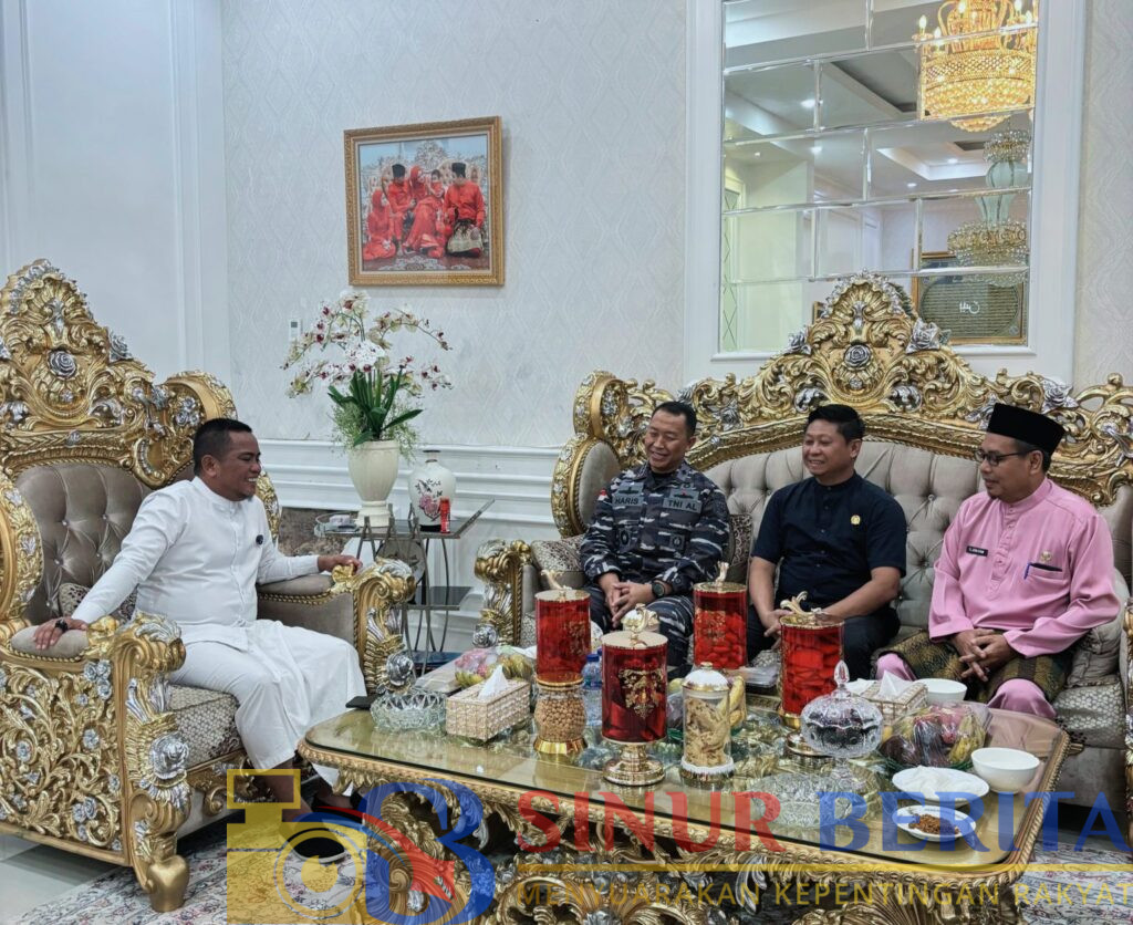 PELALAWAN || Bupati Pelalawan H. Zukri didampingi Pj. Sekda Pelalawan T. Zulfan menerima kunjungan kehormatan dari Komandan Pangkalan Angkatan Laut (Lanal) Dumai, Kolonel Laut (P) Abdul Haris beserta jajarannya di kediaman Bupati Pelalawan pada Jumat (11/4/2025). Kunjungan ini merupakan bagian dari agenda silaturahmi sekaligus mempererat sinergi antara TNI AL dan Pemerintah Daerah Kabupaten Pelalawan.