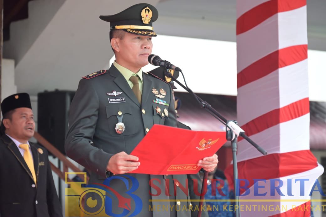 Upacara yang berlangsung khidmat dimulai sejak pukul 08.00 WIB hingga 08.30 WIB, bertindak selaku Inspektur Upacara (Irup) Dandim 0211/TT Letkol Inf. Fernando Batubara, S.Sos., M.Han, sementara Komandan Upacara dipercayakan kepada Kapten Lek Ardian Digjaya.