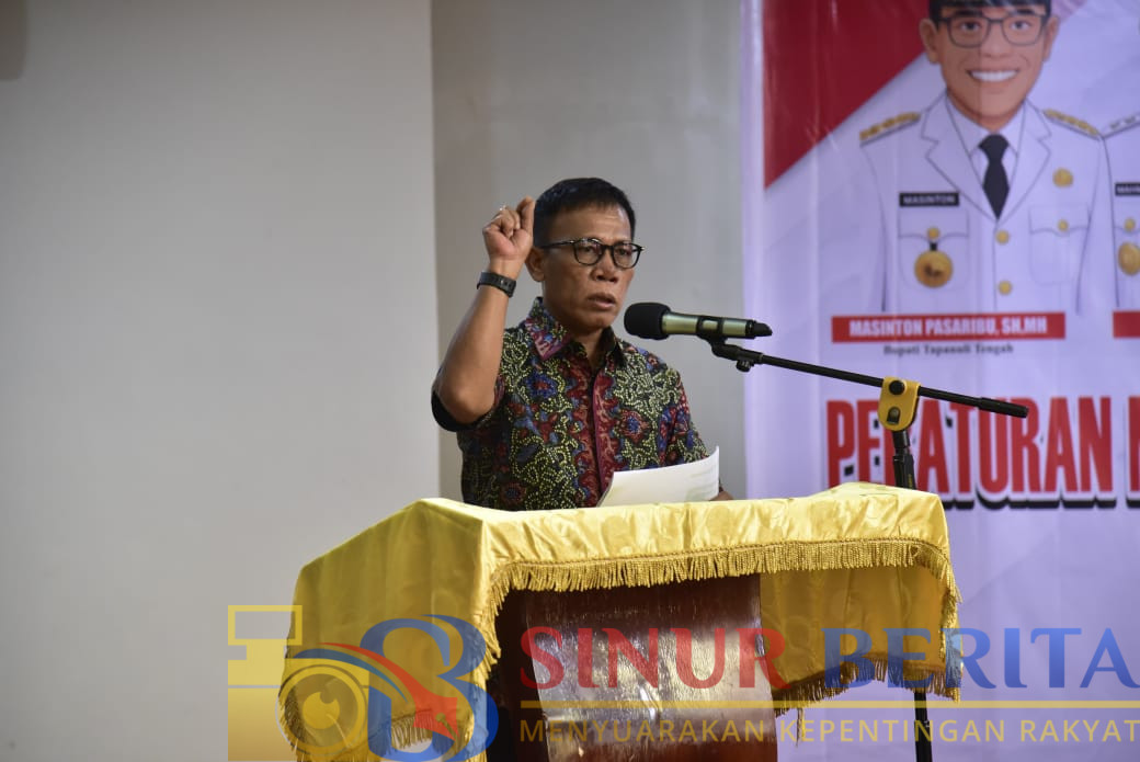 TAPTENG, SINURBERITA.COM – Bupati Tapanuli Tengah (Tapteng), Masinton Pasaribu, S.H., M.H., membuka dengan resmi kegiatan Sosialisasi Peraturan Menteri Pertanian Nomor 18 Tahun 2021 tentang Fasilitasi Pembangunan Kebun Masyarakat Sekitar yang diselenggarakan di Ballroom Pia Hotel Pandan, Senin (17/11)