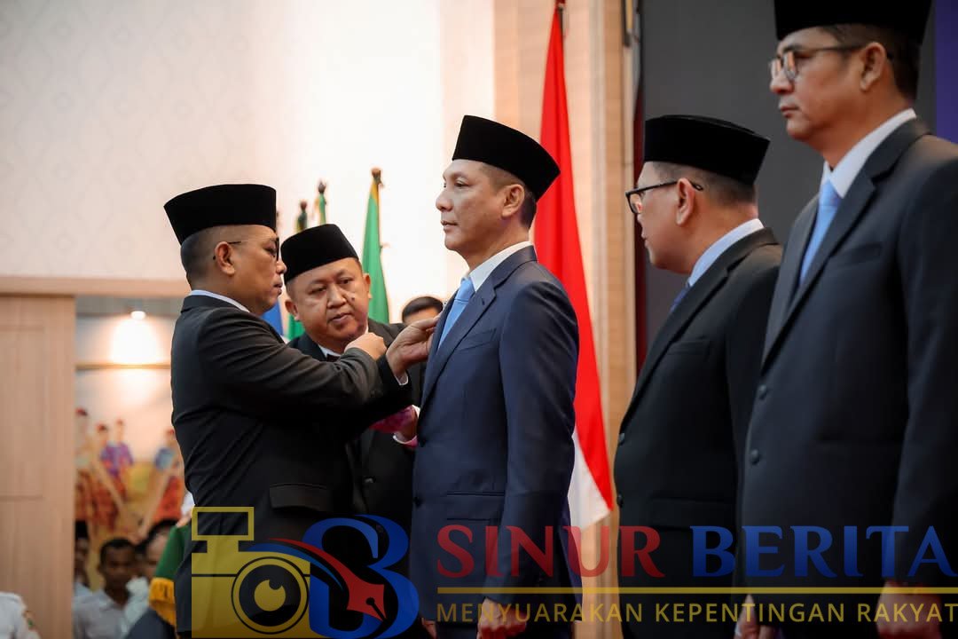 SINURBERITA.COM || Gubernur Provinsi Banten, Andra Soni resmi melantik dan memimpin pengambilan sumpah Jabatan Pimpinan Tinggi Madya Sekretaris Daerah (Sekda) Provinsi Banten Deden Apriandhi Hartawan di Pendopo Gubernur Banten, KP3B, Kota Serang, Rabu (9/7/2025).