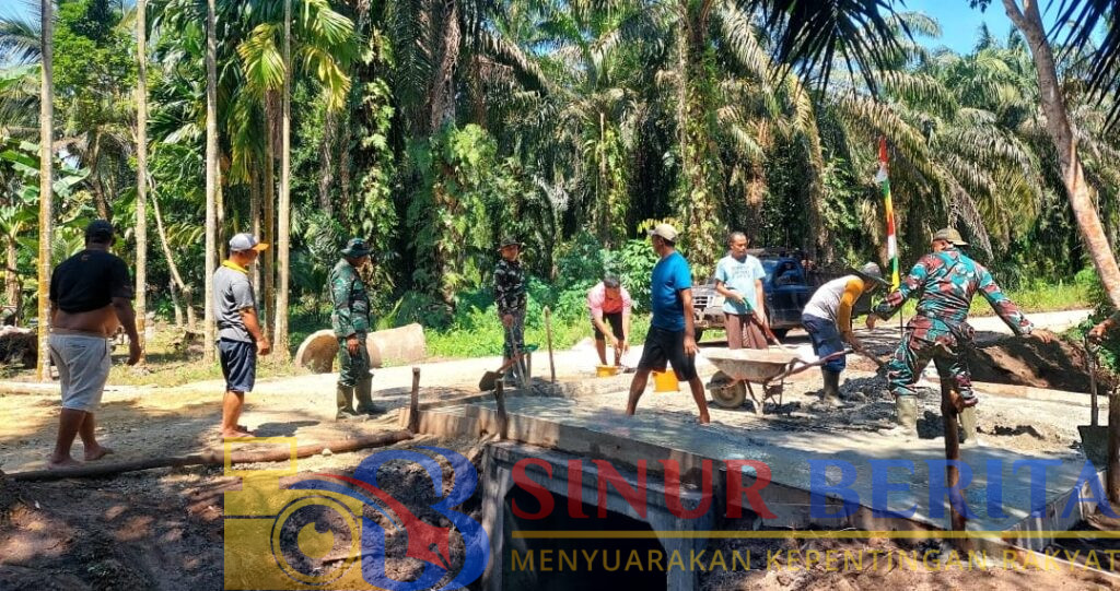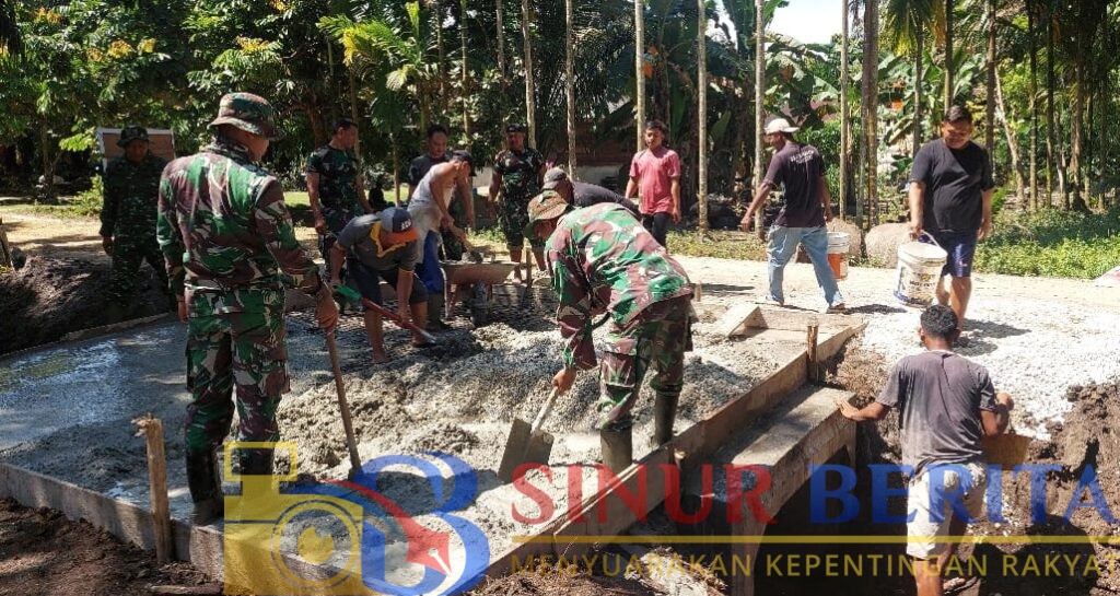 Kegiatan ini melibatkan personel TNI bersama masyarakat setempat yang bahu-membahu melaksanakan pengecoran sebagai bagian dari pembangunan infrastruktur pendukung akses jalan. Proses pengecoran dilakukan dengan penuh semangat kebersamaan dan antusiasme, mencerminkan nilai-nilai gotong royong yang masih kuat di tengah masyarakat.