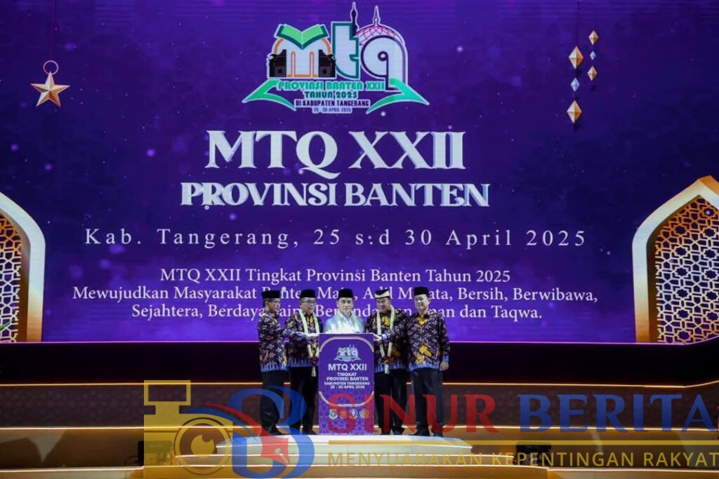 MTQ XXII Tingkat Provinsi Banten dibuka Wakil Menteri Agama (Wamenag) Romo Muhammad Syafi’i. Pembukaan berlangsung meriah dengan kehadiran bintang tamu Ummu Salamah atau yang lebih dikenal sebagai Alma Esbeye.