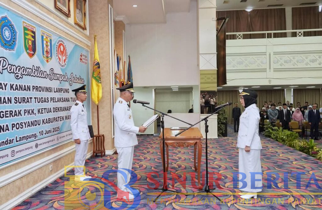BANDAR LAMPUNG || Gubernur Lampung, Rahmat Mirzani Djausal melantik dan mengambil sumpah jabatan Ayu Asalasiyah sebagai Bupati Way Kanan, Provinsi Lampung, bertempat di Balai Keratun Lantai 3, Kantor Gubernur Lampung, Selasa (10/06/2025).