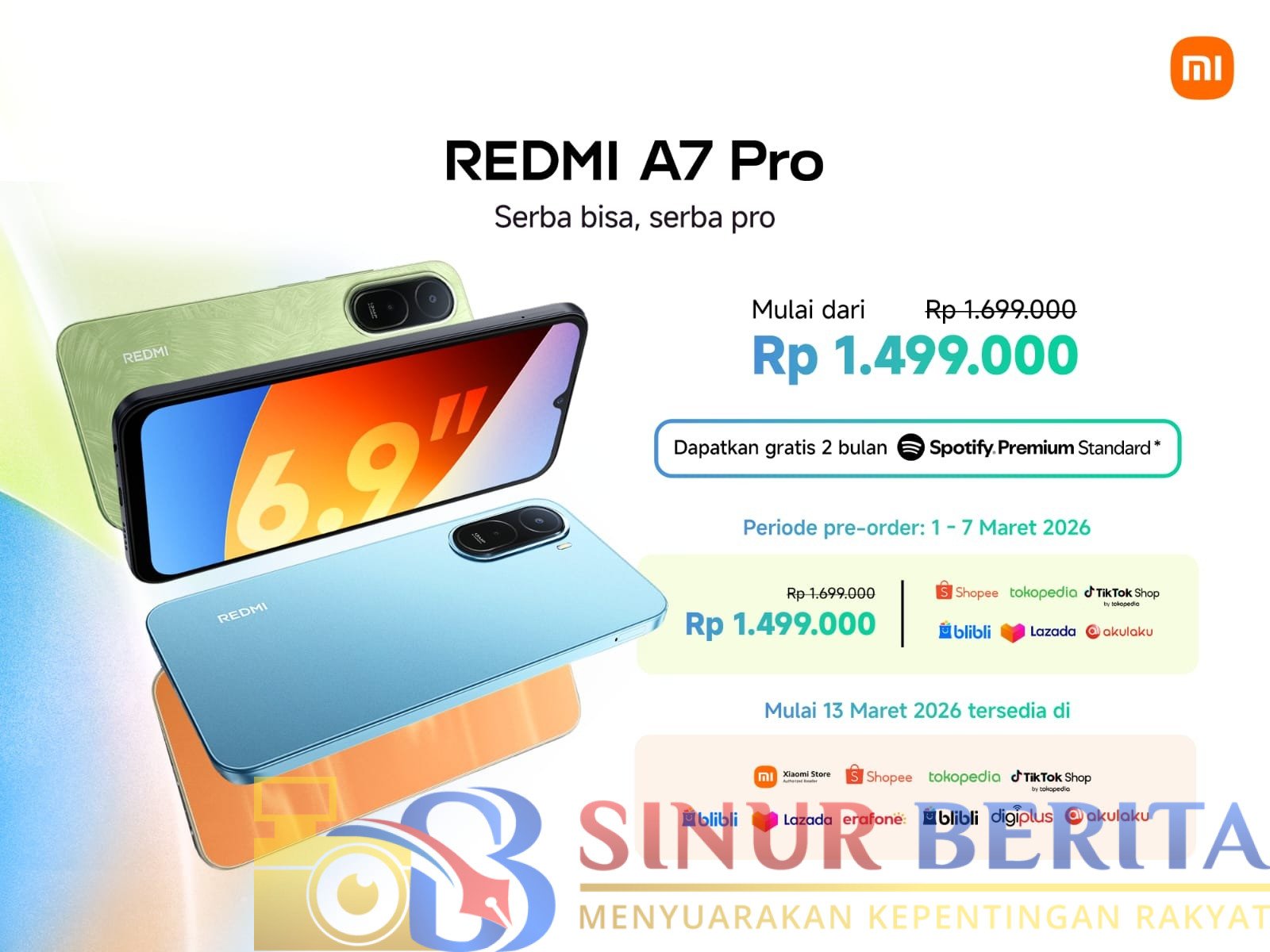 JAKARTA, SINURBERITA.COM – Xiaomi Indonesia resmi menghadirkan REDMI A7 Pro, diawali dengan peluncuran eksklusif varian online 4GB+64GB yang mengusung semangat “Serba Bisa, Serba Pro”. REDMI A7 Pro hadir dengan performa andal, layar imersif, dan baterai tahan lama untuk mendukung gaya hidup generasi muda yang aktif dan dinamis sepanjang hari.