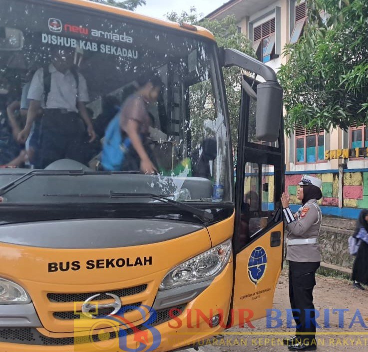 SINURBERITA.COM || SEKADAU – Masih dalam rangkai memperingati Hari Lalu Lintas Bhayangkara ke-70 Tahun 2025, Satlantas Polres Sekadau menggelar kegiatan humanis dengan menempatkan personel Polwan di dalam bus sekolah. Program ini dilaksanakan pada Rabu (10/9) bertepatan dengan jam keberangkatan anak sekolah.
