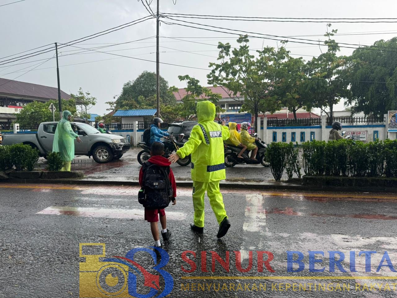 MELAWI, SINURBERITA.COM – Meskipun hujan deras, tidak mengurangi tugas pelayanan Polri kepada masyarakat. Hal ini terlihat pada Senin ( 27/4/26) pagi, Satuan Lalu Lintas melakukan Ploting Point Pagi di sejumlah titik rawan kemacetan dan kecelakaan meskipun hujan mampu menembus mantel yang di gunakan.
