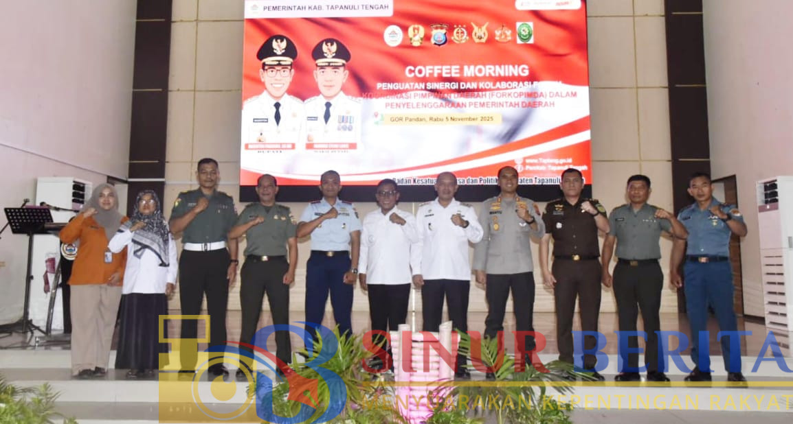 TAPTENG (SB) – Pemerintah Kabupaten (Pemkab) Tapanuli Tengah (Tapteng) menjalin sinergitas dan kolaborasi dengan menggelar Coffee Morning dengan Forum Koordinasi Pimpinan Daerah (Forkopimda) Tapteng dalam penyelenggaraan Pemerintahan Daerah, bertempat di Gedung Serbaguna Pandan, Rabu (05/11/2025).