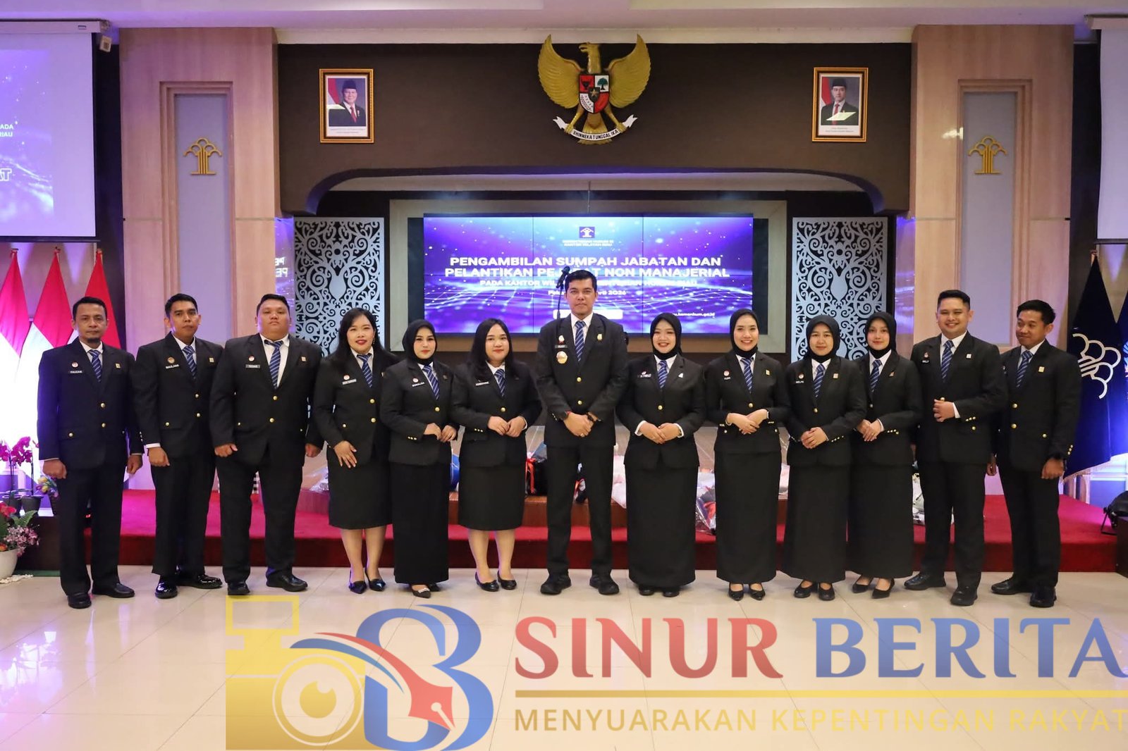 PEKANBARU, SINURBERITA.COM – Kepala Kantor Wilayah Kementerian Hukum Riau, Rudy Hendra Pakpahan, secara resmi melantik dan mengambil sumpah jabatan 12 orang Pegawai Negeri Sipil dalam Jabatan Fungsional di lingkungan Kantor Wilayah Kementerian Hukum Riau. Acara tersebut digelar di Aula Ismail Saleh pada Rabu (1/4/2026)