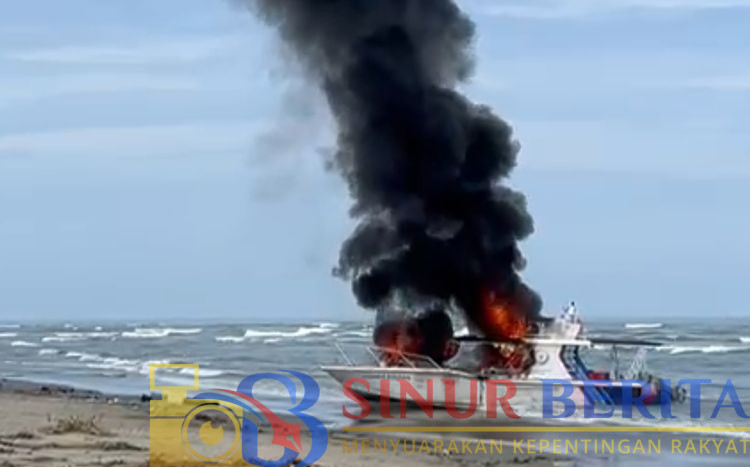 SUMATERA BARAT (SB) – Kapal patroli speedboat milik Direktorat Jenderal Pengawas Sumber Daya Kelautan dan Perikanan (PSDKP) Kementerian Kelautan dan Perikanan (KKP) dibakar oleh massa di Pantai Muara, Kecamatan Linggo Sari Baganti, Pesisir Selatan, Sumatera Barat, Jumat (12/9/2025).