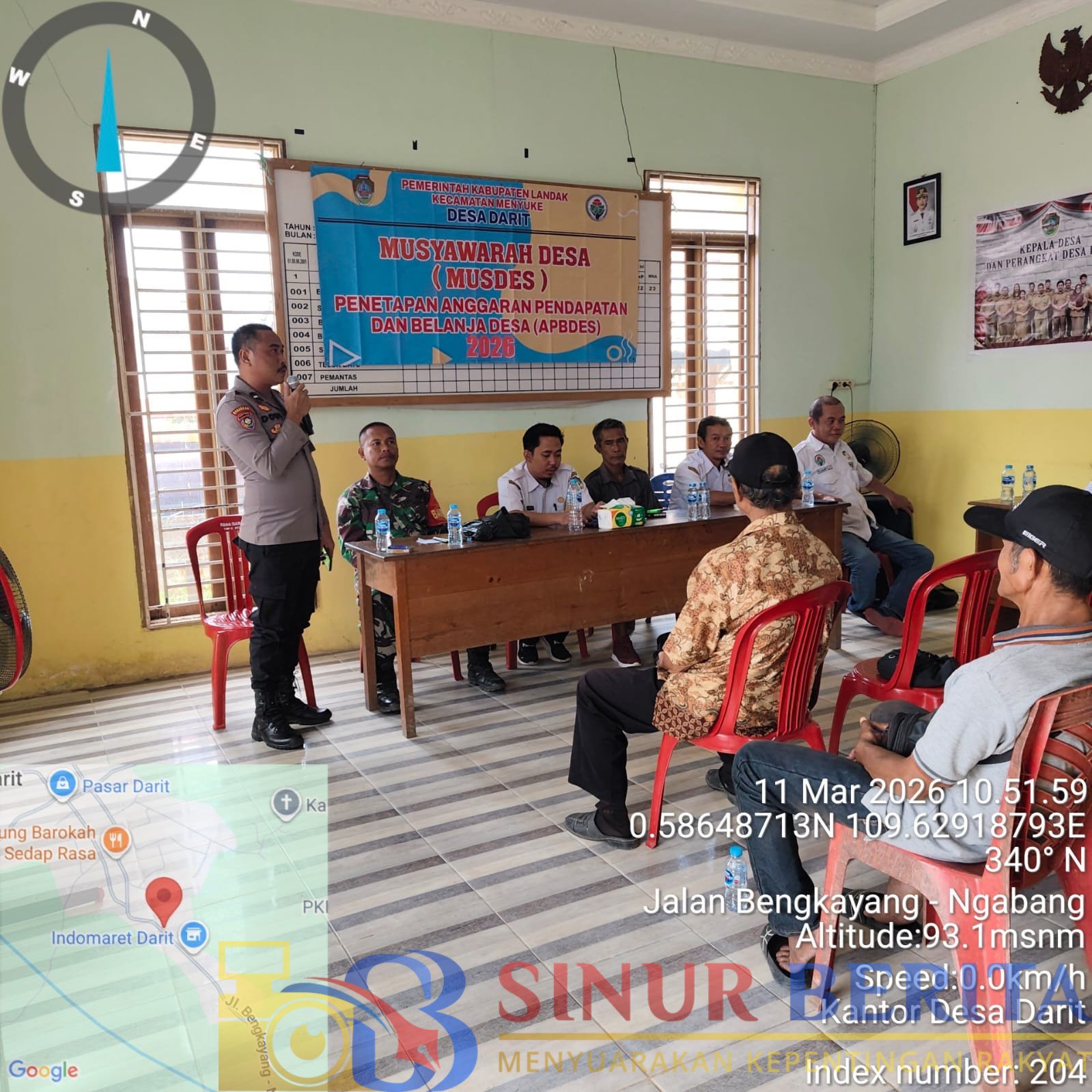 LANDAK, SINURBERITA.COM – Bhabinkamtibmas Polsek Menyuke hadiri kegiatan Musyawarah Desa (Musdes) tentang Penetapan KPM BLT-DD dan Musyawarah Penetapan APBDes Tahun 2026. Kegiatan tersebut dilaksanakan di Balai Desa Darit, Kecamatan Menyuke, pada Rabu, 11 Maret 2026.