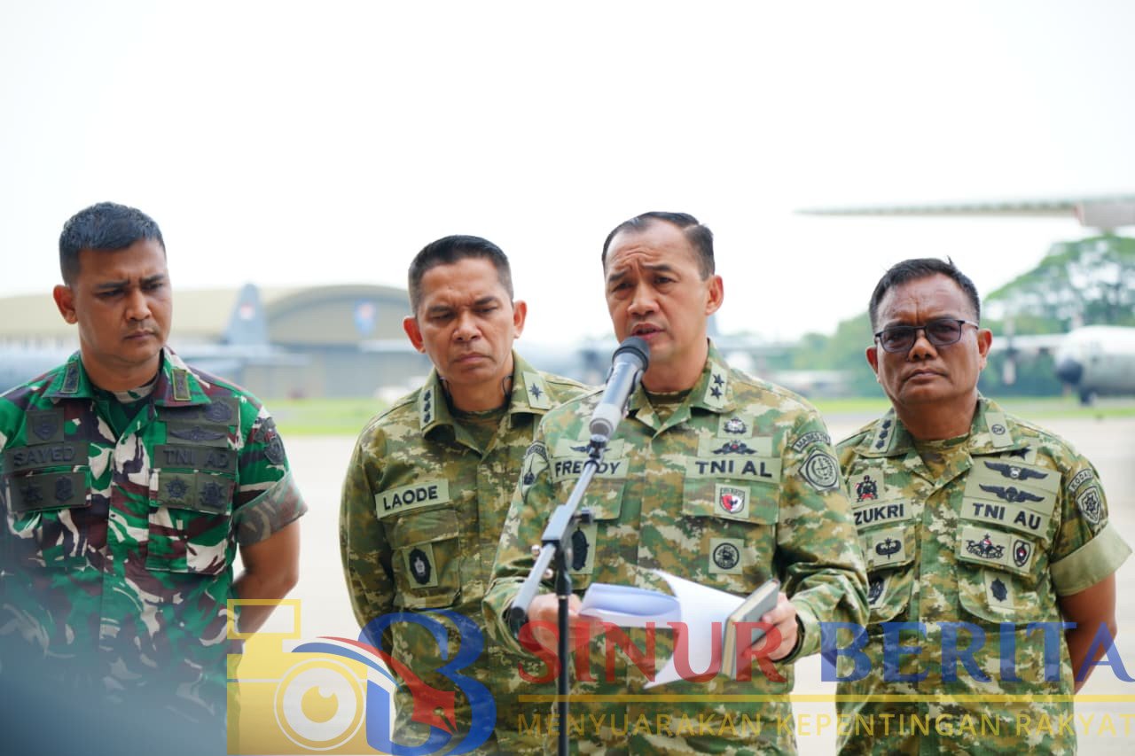 JAKARTA, SINURBERITA.COM – Kepala Pusat Penerangan (Kapuspen) TNI, Mayjen TNI (Mar) Freddy Ardianzah didampingi perwakilan dari Dinas Penerangan Angkatan menyampaikan perkembangan penanganan bencana di Sumatera Utara, Sumatera Barat, dan Aceh dalam keterangan pers di Lanud Halim Perdanakusuma, Jakarta Timur, Jumat (5/12/2025).