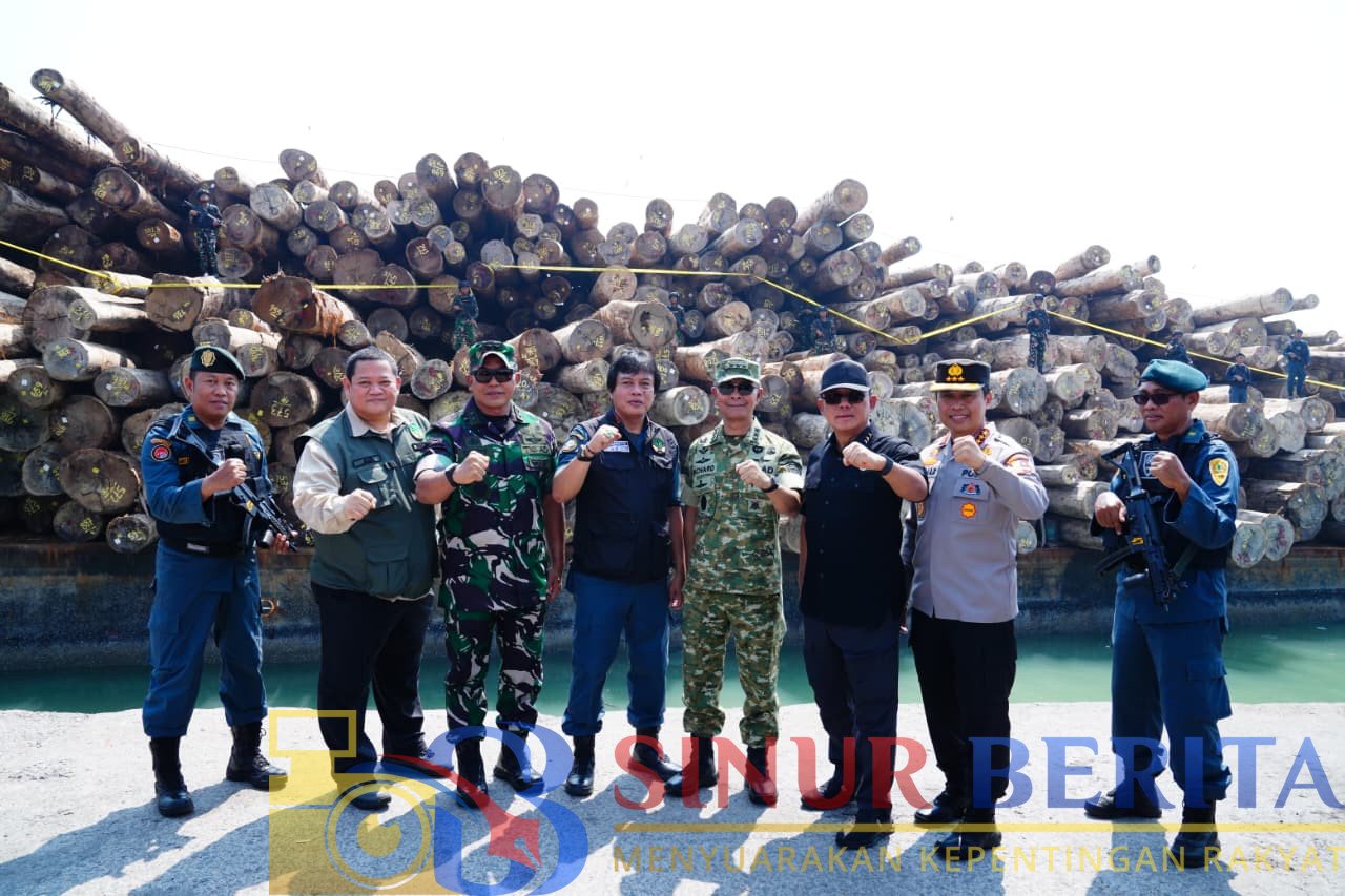 GRESIK (SB) – Kepala Staf Umum (Kasum) TNI, Letjen Richard Tampubolon meninjau langsung penindakan Satuan Tugas Penertiban Kawasan Hutan (Satgas PKH) yang berhasil mengamankan 4.610 meter kubik kayu bulat ilegal dan satu tongkang di Pelabuhan Gresik, Jawa Timur, Selasa (14/10/2025).
