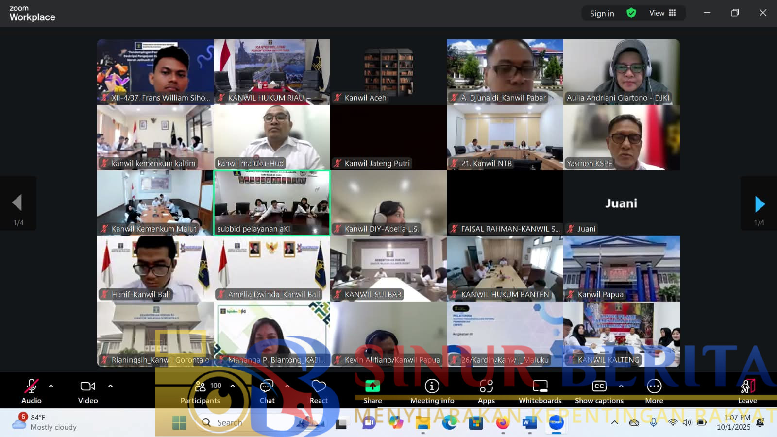 Kepala Divisi Pelayanan Hukum, Febri Mujiono bersama Kepala Bidang Kekayaan Intelektual, Yuliana Manulang serta jajaran mengikuti kegiatan ini dari ruang rapat Kakanwil. Koordinasi ini bertujuan mengevaluasi pemuktahiran data KI di lingkungan perguruan tinggi, yang dinilai belum maksimal.