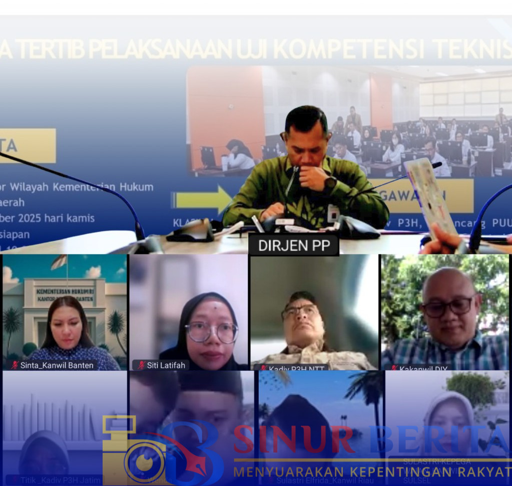 PEKANBARU (SB) – Kepala Kantor Wilayah Kementerian Hukum Riau, Rudy Hendra Pakpahan, menghadiri pengarahan pelaksanaan Uji Kompetensi (Ukom) Perancang Peraturan Perundang-undangan (PUU) yang diselenggarakan oleh Direktorat Jenderal Peraturan Perundang-undangan Kementerian Hukum RI secara virtual pada Jumat (7/11).