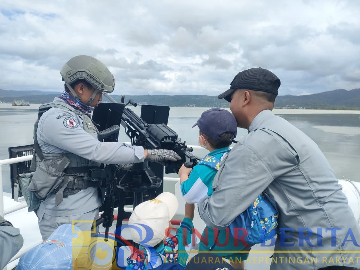 Antusiasme dan keceriaan terpancar dari wajah anak-anak, terutama saat mereka melihat langsung peralatan pengamanan laut yang digunakan oleh Bakamla RI.