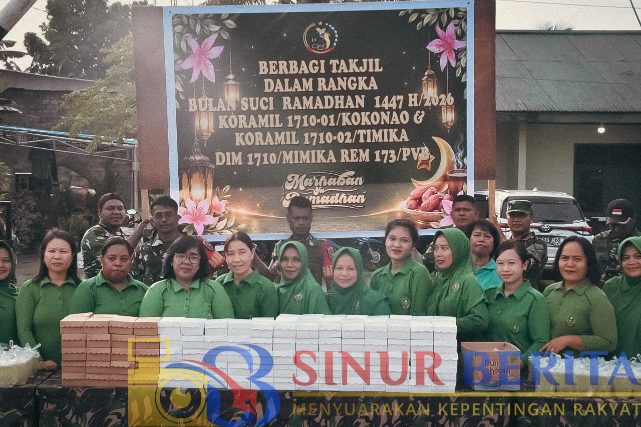 TIMIKA, SINURBERITA.COM – Berbagi kebahagiaan di bulan suci Ramadan, Koramil 1710-01/Kokonao dan Koramil 1710-02/Timika melaksanakan kegiatan pembagian takjil kepada pengguna jalan dan masyarakat yang melintas. Kegiatan tersebut dilaksanakan di Jalan Yos Sudarso, Timika, Jumat (6/3/2026).