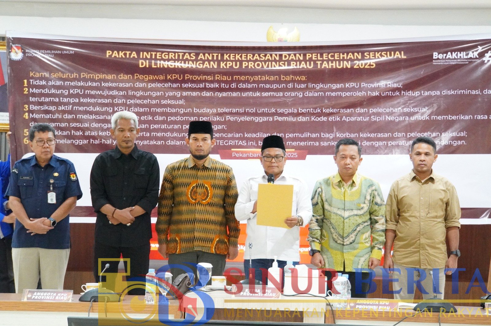 Acara dilanjutkan dengan pembacaan Pakta Integritas Pencegahan dan Penanganan Kekerasan Seksual yang kemudian ditandatangani oleh Ketua, anggota dan Sekretariat KPU Provinsi Riau. Pakta integritas ini juga akan ditandatangani oleh seluruh pejabat struktural dan staf Sekretariat KPU Provinsi Riau.