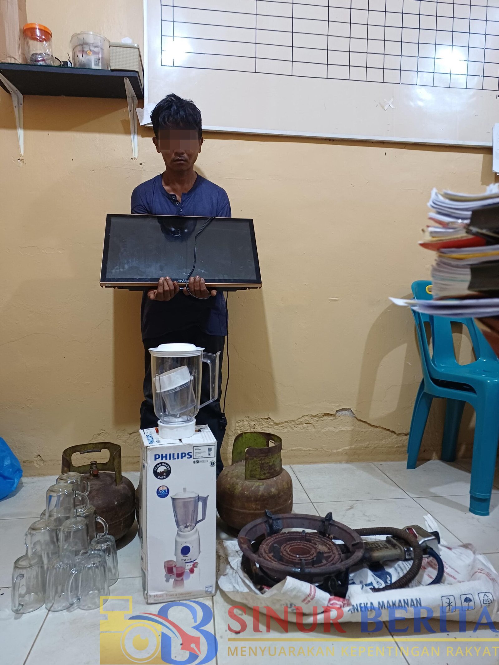 Dari hasil penggeledahan di beberapa titik, petugas berhasil menyita 1 unit TV Advan 21 inci; 1 unit kompor gas; 3 unit tabung gas LPG 3 kg; 1 set blender merk Philips (dalam kotak); dan Satu lusin gelas merk Duralex.