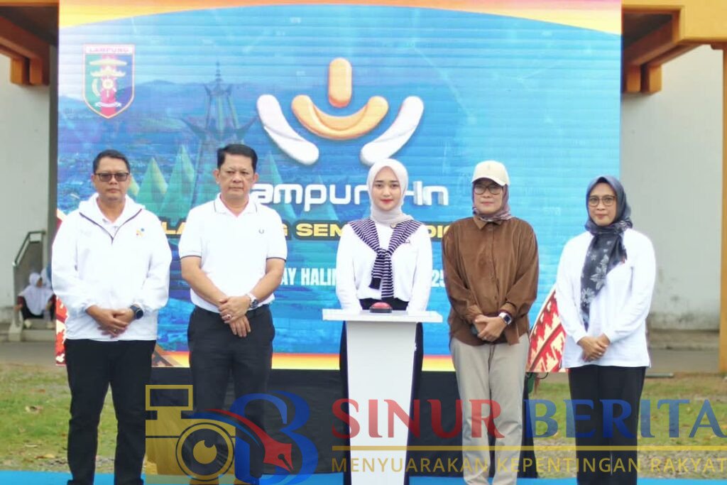 Aplikasi Lampung-In secara resmi diluncurkan oleh Wakil Gubernur Lampung, Jihan Nurlela didampingi Staf Khusus Kepresidenan Hera Nugrahayu, di Lapangan PKOR Way Halim, Minggu (15/6/2025) dan disaksikan oleh sejumlah masyarakat yang tengah melakukan kegiatan olah raga.