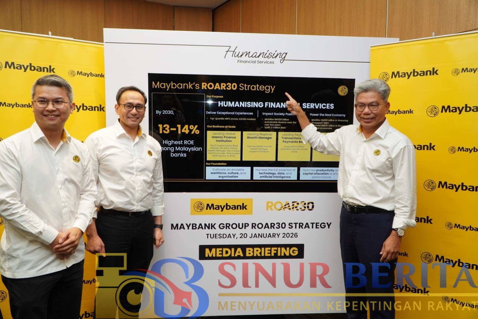 “Seiring dengan selesainya strategi M25+, strategi lima tahun ke depan ini semakin menegaskan tujuan Maybank Group dengan fokus menciptakan nilai tambah bagi para pemegang saham melalui peningkatan ROE yang berkelanjutan. Melalui strategi ROAR30, kini Maybank Group memasuki fase percepatan pertumbuhan dengan membangun bisnis berskala besar untuk memaksimalkan peran bank di pasar ASEAN yang kian signifikan.”