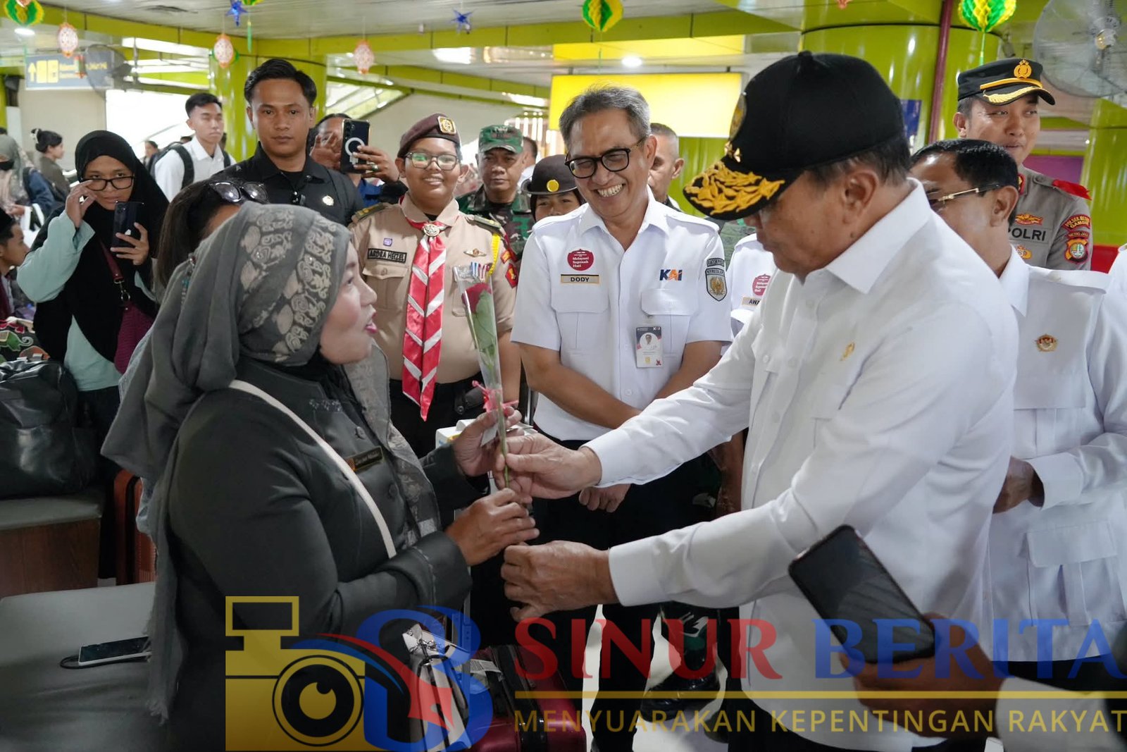 Dalam suasana penuh kehangatan, Menko Polkam turut memberikan bunga dan cinderamata kepada para pemudik sebagai bentuk perhatian serta dukungan pemerintah kepada masyarakat yang akan merayakan Hari Raya Idul Fitri di kampung halaman.
