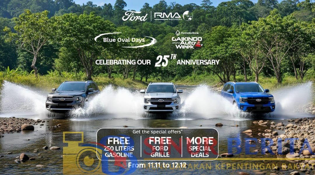 JAKARTA, SINURBERITA.COM – Ford RMA Indonesia menandai pencapaian penting seperempat abad kehadirannya di Indonesia. Momen ini dirayakan bertepatan dengan partisipasi Ford di Gaikindo Jakarta Auto Week (GJAW) 2025 yang berlangsung di ICE BSD, Tangerang, tanggal 21 hingga 30 November 2025.