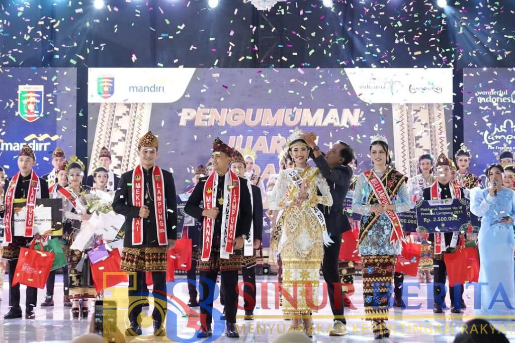 Setelah melalui beberapa tahap penilaian, keluar sebagai Pemenang Muli Mekhanai Provinsi Lampung Tahun 2025, diraih oleh Muli asal Kota Bandar Lampung Marcheline Aurely dan Mekhanai asal Kabupaten Tulang Bawang Muhammad Adit Bintang Hartahta. (*RL/Iman)