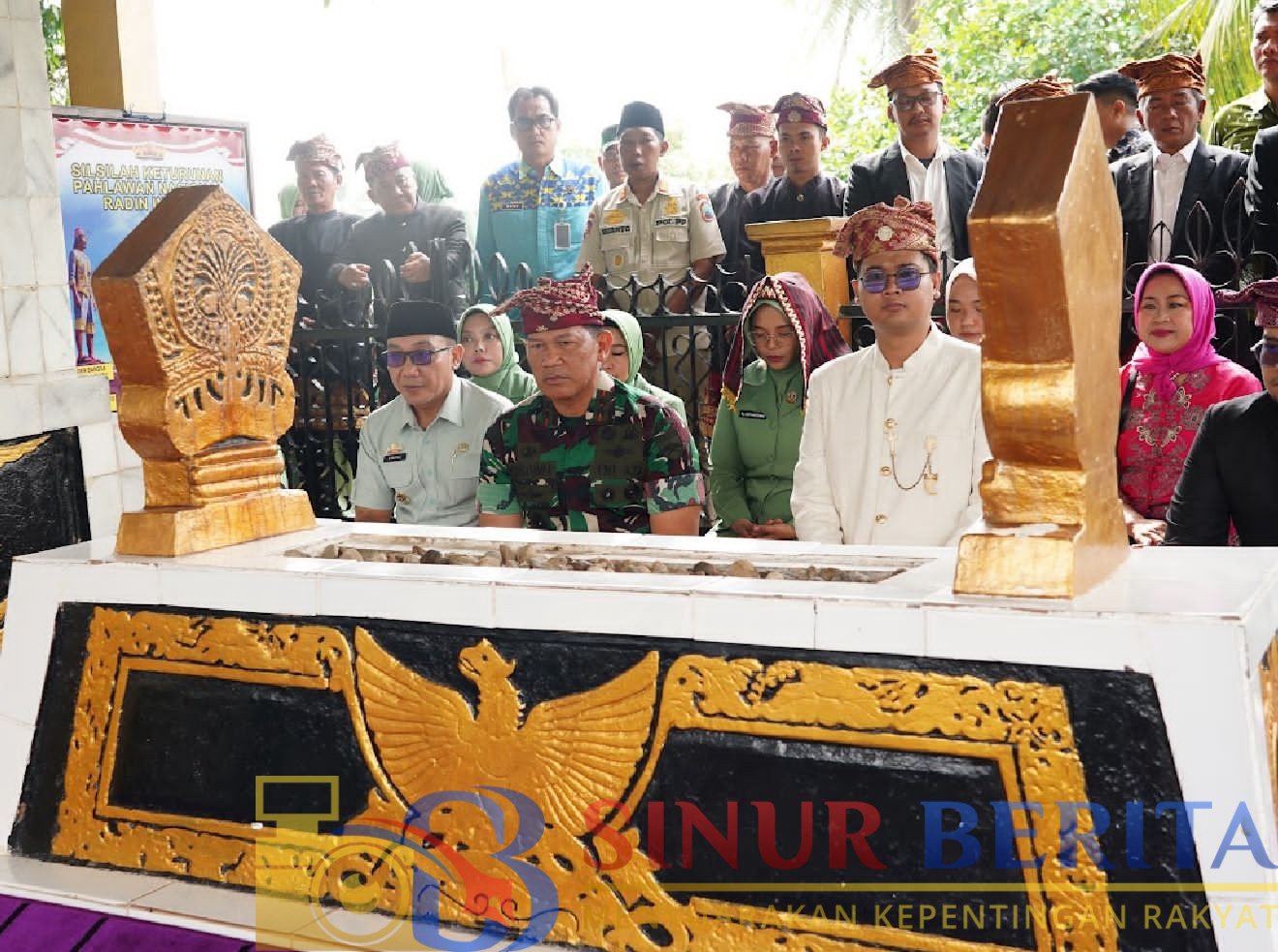 LAMPUNG SELATAN (SB) – Panglima Daerah Militer (Pangdam) XXI/Radin Inten, Mayjen TNI Kristomei Sianturi didampingi Ketua Persit KCK Daerah XXI/Radin Inten, Asti Kristomei Sianturi, melaksanakan ziarah ke Makam Pahlawan Nasional Radin Inten II yang terletak di Desa Gedung Harta, Kecamatan Penengahan, Kabupaten Lampung Selatan. Jumat (19/9/25).