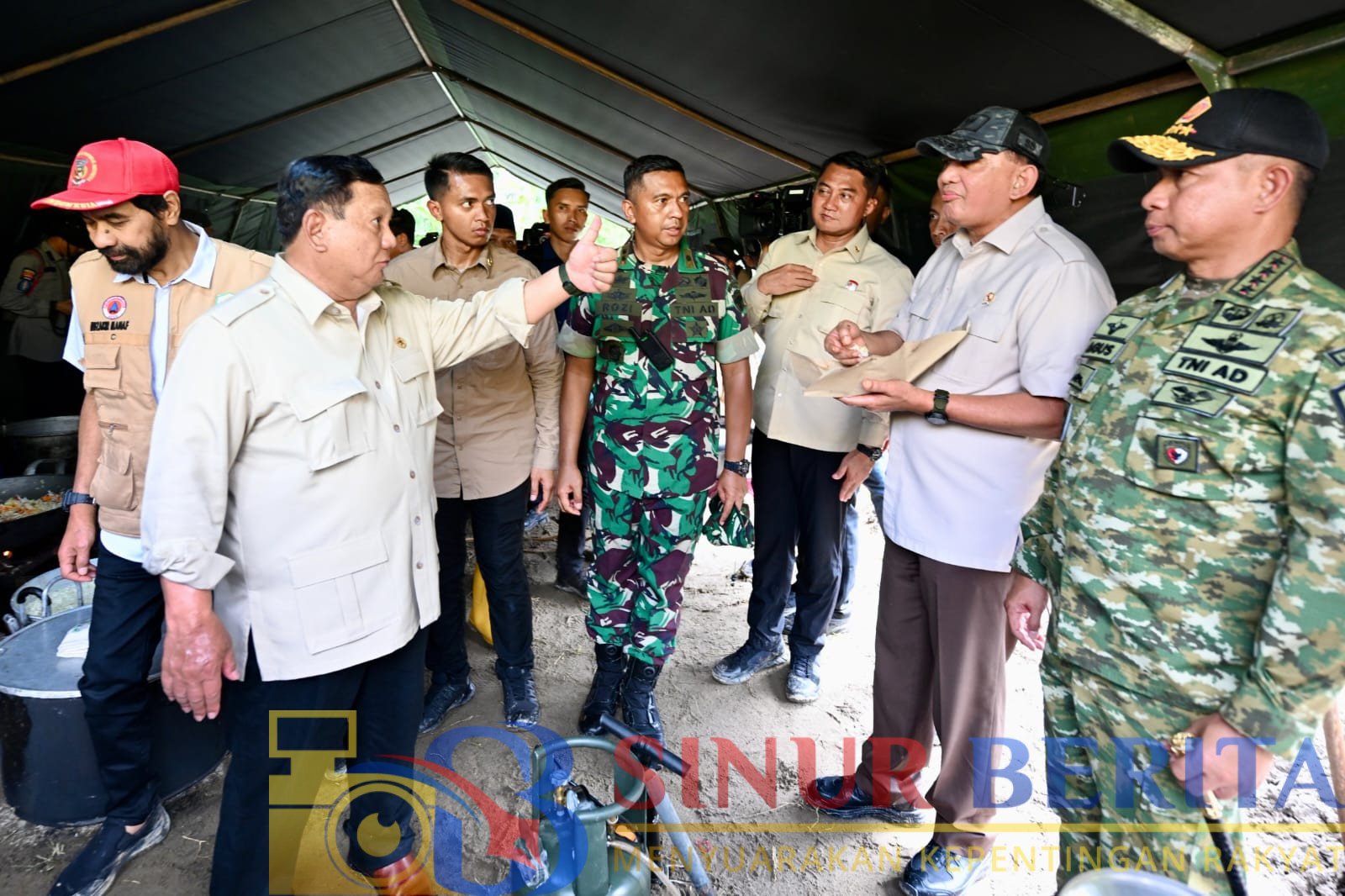 Usai meninjau pembangunan jembatan, Presiden Prabowo yang didampingi Panglima TNI beserta rombongan melanjutkan kunjungan ke lokasi pengungsian korban bencana. Di tenda utama pengungsian yang menampung sekitar 532 warga Dusun Kayee Jato, telah disiapkan dua tenda besar lengkap dengan posko kesehatan, sarana air bersih, serta dapur umum yang beroperasi setiap hari.