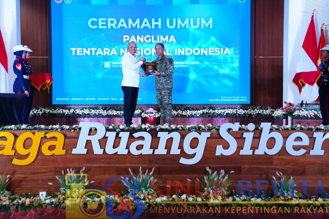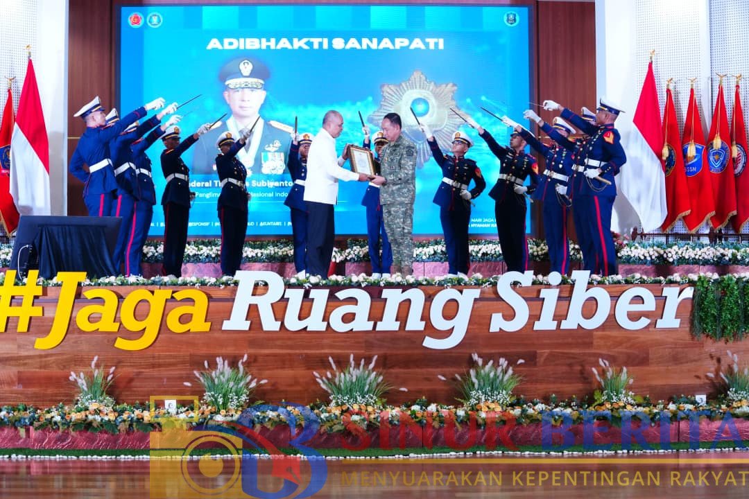 DEPOK, SINURBERITA.COM – Panglima TNI Jenderal Agus Subiyanto menerima penghargaan Adhibhakti Sanapati dari Badan Siber dan Sandi Negara (BSSN) atas jasa dan dharma bakti yang luar biasa kepada bangsa dan negara di bidang keamanan siber dan persandian. Penghargaan tersebut diberikan dalam rangkaian kegiatan ceramah umum yang berlangsung di Auditorium Mayjen TNI (Purn) dr. Roebiono Kertopati, Kantor BSSN, Sawangan, Depok, Selasa (28/4/2026).