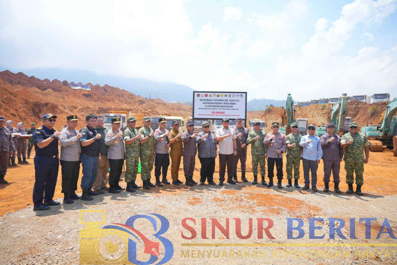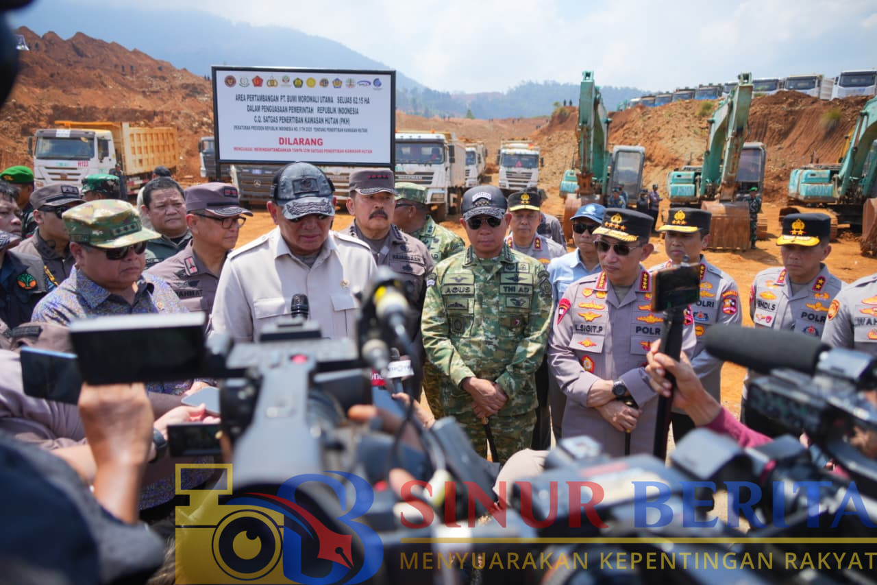 MOROWALI (SB) – Panglima TNI Jenderal Agus Subiyanto bersama Menteri Pertahanan Sjafrie Sjamsoeddin, Jaksa Agung ST Burhanuddin dan Kapolri Jenderal Polisi Listyo Sigit Prabowo meninjau langsung lokasi penertiban kawasan hutan oleh Satuan Tugas Penertiban Kawasan Hutan (Satgas PKH) yang berhasil mengamankan lahan seluas 62,5 hektare yang sebelumnya digunakan untuk aktivitas penambangan nikel ilegal di Desa Laroenai, Kecamatan Bungku Pesisir, Kabupaten Morowali, Sulawesi Tengah, Selasa (4/11/2025).