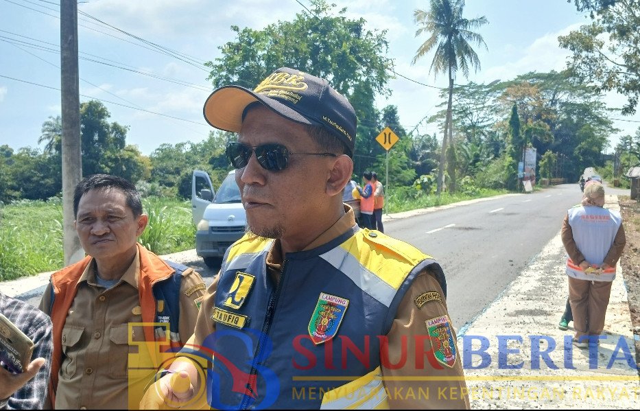Kadis Bina Marga dan Bina Konstruksi Provinsi Lampung, M. Taufiqullah bersama tim meninjau jalan provinsi yang terletak di Desa Gedung Dalem, Kecamatan Batanghari Nuban, Kabupaten Lampung Timur.