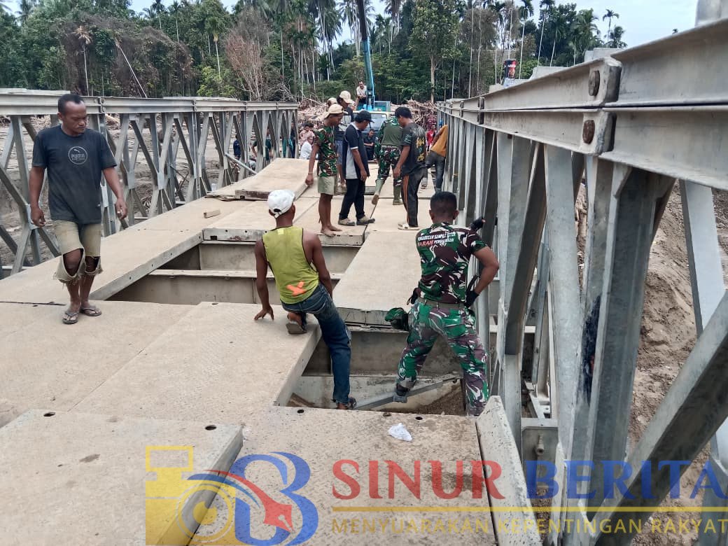 Sementara itu, pembangunan Jembatan Bailey Kutablang pada ruas jalan yang sama terus dikebut. Jembatan dengan bentang sekitar 66 meter ini dikerjakan oleh personel gabungan Zidam Iskandar Muda dan Yonzipur 16/Dhika Anoraga, dengan progres mencapai 60% setelah pemasangan lantai jembatan serta wings penarik.