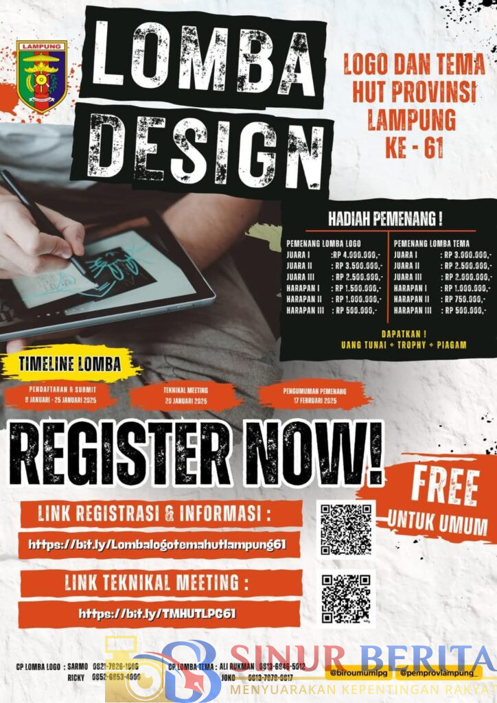 Memperingati hari jadi Provinsi Lampung ke-61 Tahun 2025, Pemerintah Provinsi Lampung menggelar lomba Desain Logo dan Tema HUT Provinsi Lampung ke 61, Senin (13/1/2025).