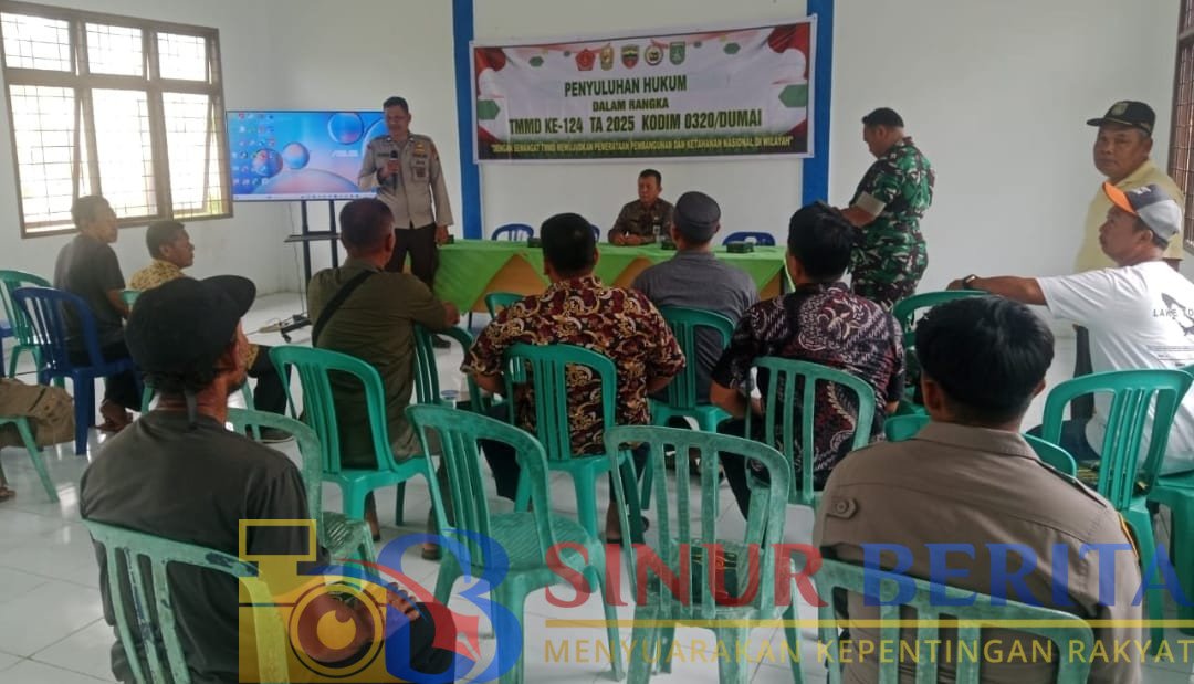 DUMAI || Program TNI Manunggal Membangun Desa (TMMD) ke-124 Kodim 0320/Dumai tidak hanya fokus pada pembangunan fisik, tetapi juga menyasar peningkatan kesadaran hukum masyarakat melalui kegiatan non fisik. Salah satu agenda penting dalam rangkaian kegiatan tersebut adalah penyuluhan hukum yang digelar di Kelurahan Bukit Kayu Kapur, Kecamatan Bukit Kapur, Kota Dumai, Selasa (27/05/2025)