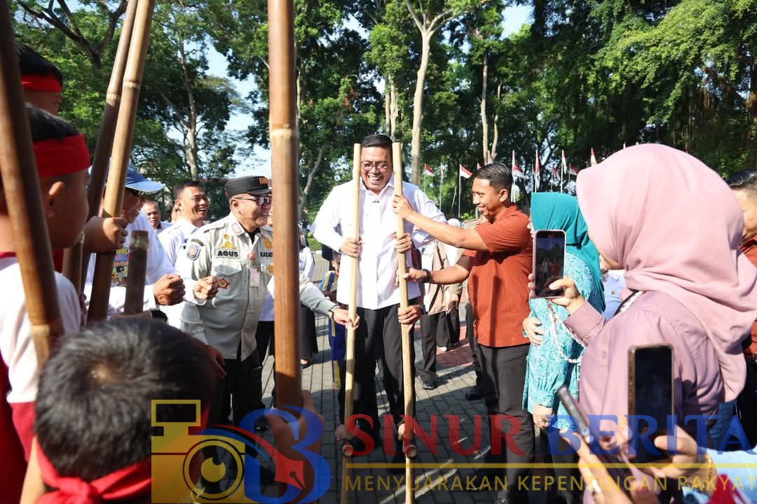 SINURBERITA.COM || Gubernur Provinsi Banten, Andra Soni, merayakan Hari Anak Nasional (HAN) ke-41 tingkat Provinsi Banten tahun 2025 di Gedung Negara Provinsi Banten. HAN ke-24 mengusung tema Anak Hebat, Indonesia Kuat, Menuju Indonesia Emas 2045. Andra Soni bermain enggrang, hulahop dan lompat tali. Rabu (23/7/2025).