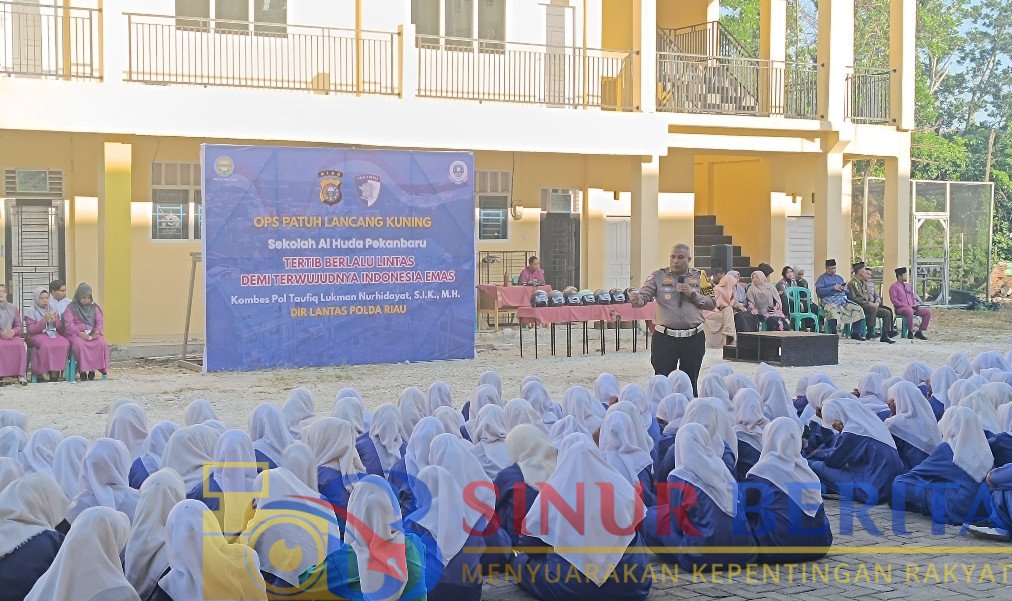 SINURBERITA.COM || Dalam rangka Operasi Patuh Lancang Kuning 2025, Direktorat Lalu Lintas Polda Riau menggelar program edukatif “Police Goes to School” dan “Green Policing” di Yayasan Al Huda Pekanbaru, yang meliputi SMP, MTs, SMA, dan SMK. Jumat (18/7/2025).