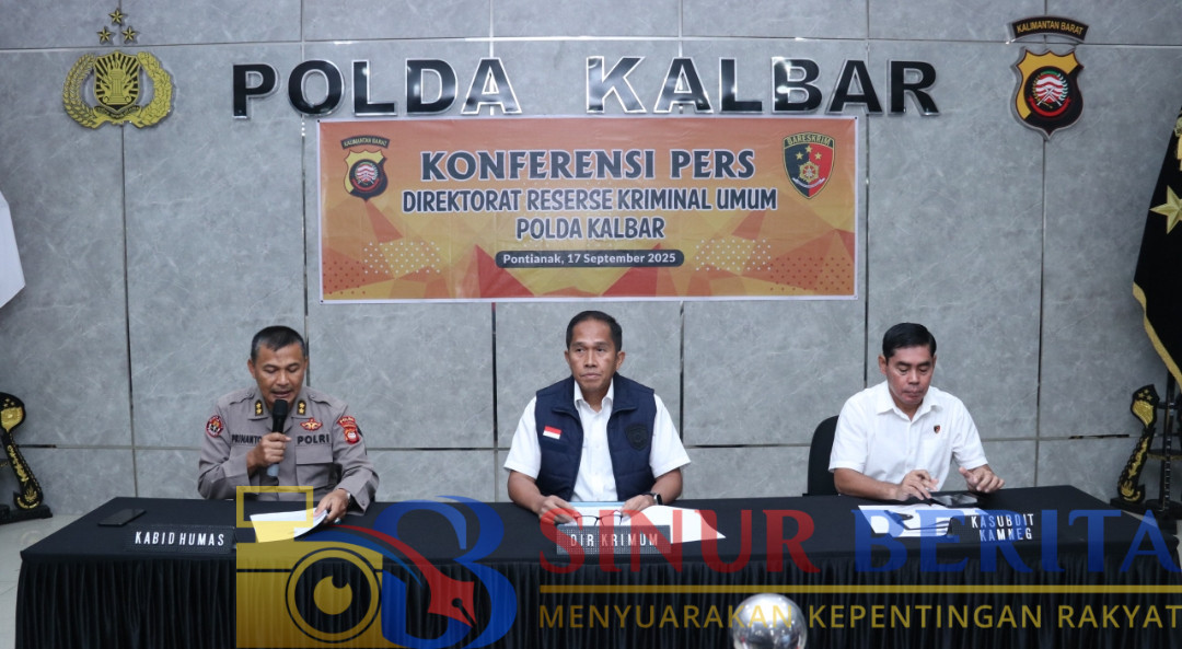 Konferensi Pers dipimpin oleh Ditreskrimum Polda Kalbar, Kombes Pol Raswin Bachtiar Sirait, S.H, S.I.K. M.Si didampingi oleh Kasubbid Penmas Bidhumas Polda Kalbar, AKBP Prinanto, dan Kasubdit Kamneg, Kompol Lely Suheri, S.H, M.M serta dihadiri oleh para awak media, baik lokal maupun media nasional. Rabu (17/9/2025).