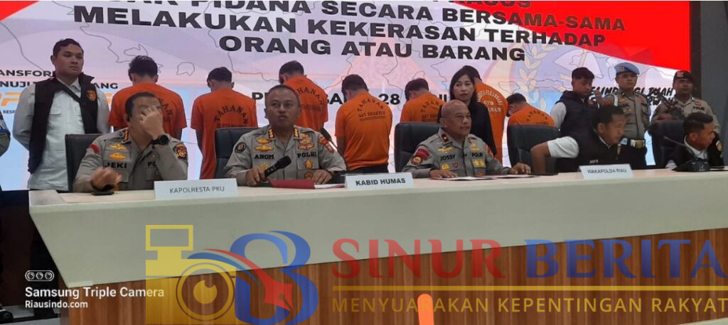 Dalam konferensi pers yang diadakan pada Senin (28/4/2025), hadir Wakapolda Riau Brigjen Pol Jossy Kusumo, Dir Reskrimum Kombes Pol Asep Dermawan, Kabid Humas Kombes Anom Karibianto, Kapolresta Pekanbaru Kombes Jeki Rahmat Mustika, serta Kasubdit Jatanras Polda Riau.