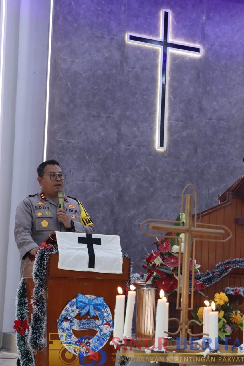 Ibadah Natal Bersama ini dipimpin oleh para pimpinan gereja setempat dan diikuti oleh para penatua, majelis, pengurus gereja, serta jemaat. Kegiatan tersebut turut dihadiri langsung oleh Kapolres Sibolga AKBP Eddy Inganta, S.H., S.I.K., M.H., bersama Ketua Bhayangkari Cabang Sibolga Ny. Laura Eddy Inganta, para pejabat utama Polres Sibolga, serta personel Polres Sibolga.
