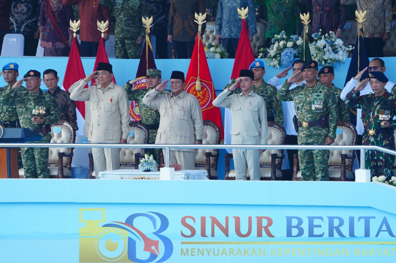 JAKARTA (SB) – Panglima TNI Jenderal Agus Subiyanto bersama Menhan RI, Wapang TNI serta para Kepala Staf Angkatan mendampingi Presiden Republik Indonesia Prabowo Subianto yang bertindak sebagai Inspektur Upacara pada peringatan Hari Ulang Tahun (HUT) ke-80 Tentara Nasional Indonesia (TNI) di Lapangan Silang Monas, Jakarta Pusat, Minggu (5/10/2025).