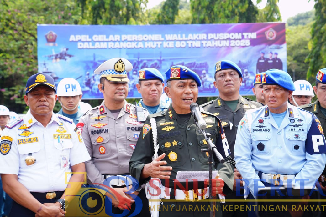 JAKARTA (SB) – Pusat Polisi Militer Tentara Nasional Indonesia (Puspom TNI) menggelar Apel Gelar Personel Pengawalan Lalu Lintas dan Parkir (Wallakir) dalam rangka HUT Ke-80 TNI. Apel ini dipimpin langsung oleh Danpuspom TNI Mayjen Yusri Nuryanto di Pintu Sepatu Roda, Silang Monas, Jakarta Pusat, Senin (22/9/2025).