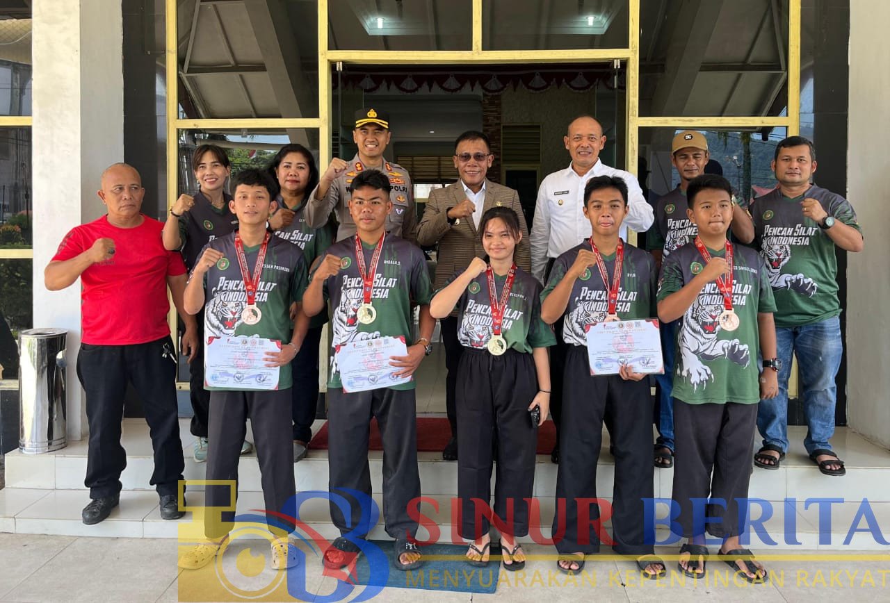 SINURBERITA.COM || TAPTENG – Bupati Tapanuli Tengah Masinton Pasaribu, SH, MH bersama Wakil Bupati Tapanuli Tengah Mahmud Efendi dan Kapolres Tapanuli Tengah AKBP Wahyu Endrajaya, S.IK., M.Si menyambut kedatangan Atlit Pencak Silat Harihilang Peraih Medali Emas Kejuaraan 2nd Internasional Indonesian Student Pencak Silat 2025, bertempat di Kantor Bupati Tapanuli Tengah, Jumat (15/08/2025).