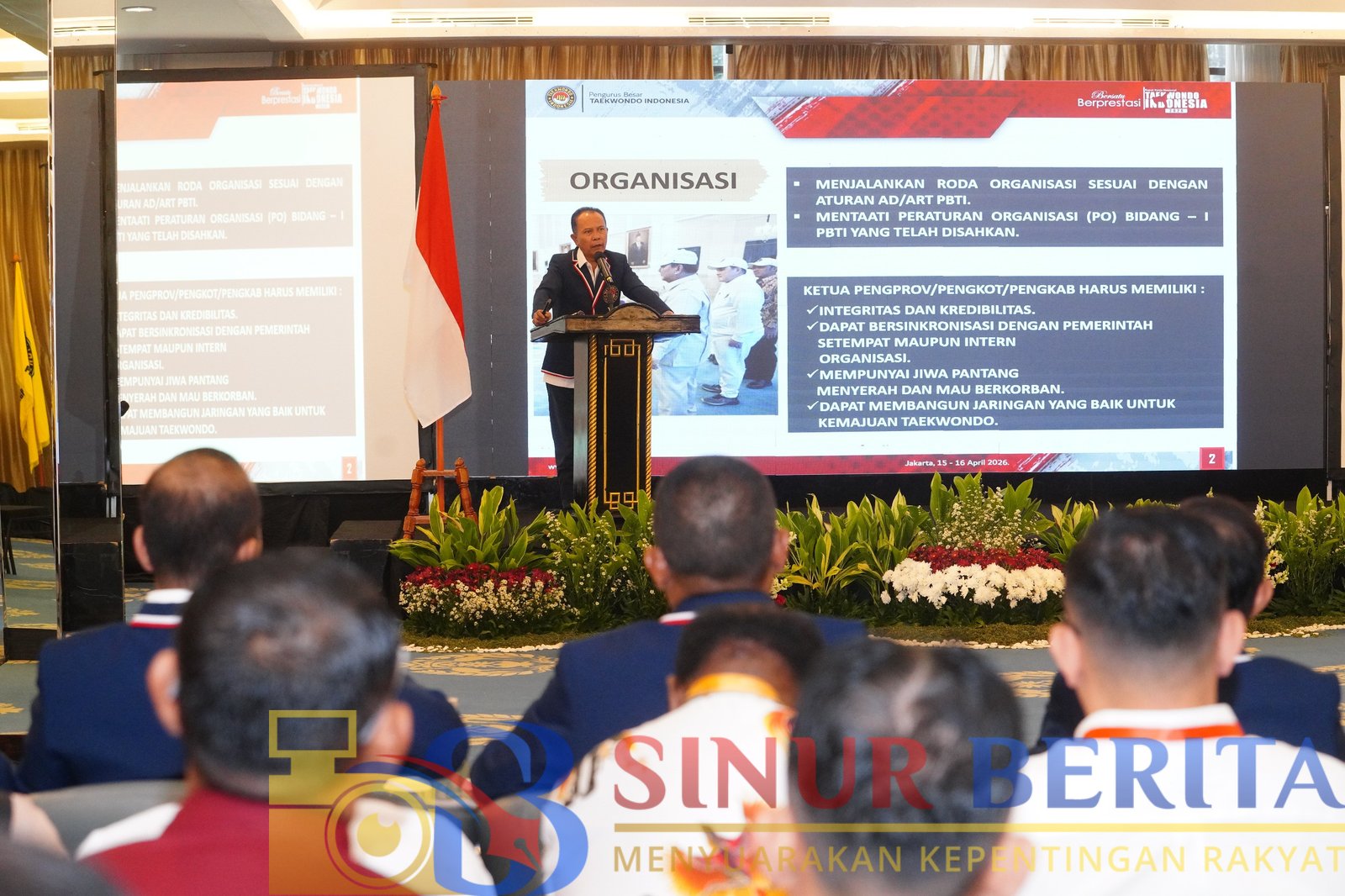 JAKARTA, SINURBERITAM.COM – Ketua Umum Pengurus Besar Taekwondo Indonesia (Ketum PBTI) Letjen TNI Richard Tampubolon, S.H.,M.M secara resmi menutup Rapat Kerja Nasional (Rakernas) Taekwondo Indonesia Tahun 2026 di Arhotel Gelora Senayan, Jakarta Pusat, Kamis (16/04/2026) malam.