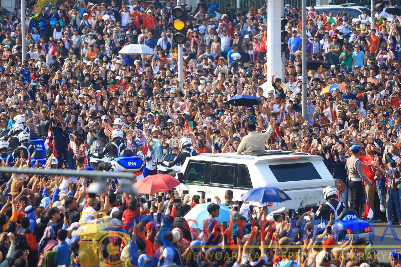 JAKARTA (SB) – Masyarakat dari berbagai lapisan tampak memadati kawasan Istana Merdeka hingga Monumen Nasional (Monas) untuk menyaksikan rangkaian kebesaran Presiden Republik Indonesia Prabowo Subianto menuju lokasi Upacara Peringatan Hari Ulang Tahun ke-80 Tentara Nasional Indonesia (TNI), Minggu (5/10/2025).