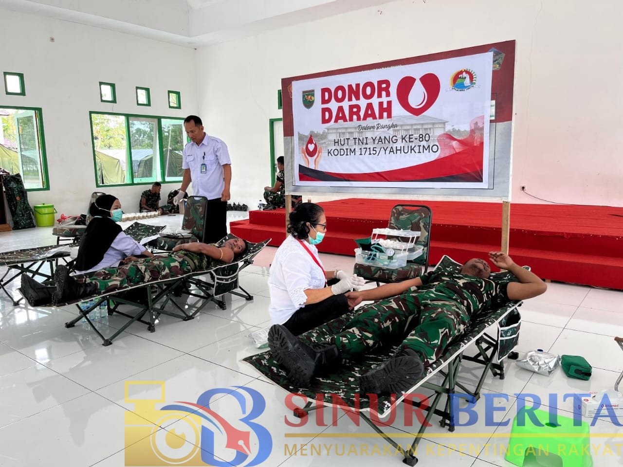 Sebanyak 100 kantong darah dari berbagai golongan berhasil dikumpulkan dari aksi donor darah yang diikuti oleh personel TNI AD dari satuan Kodim 1715/Yahukimo, Yonif TP 816/Doruka dan instansi-instansi Pemda.