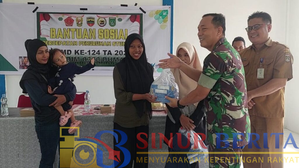 KOTA DUMAI || Dalam rangka mendukung percepatan penurunan angka stunting di wilayah Kota Dumai, Satgas Tentara Manunggal Membangun Desa (TMMD) Ke-124 Kodim 0320/Dumai melaksanakan kegiatan pemberian bantuan sosial kepada warga di Kelurahan Bukit Kayu Kapur, Kecamatan Bukit Kapur, Selasa 03/06/2025.