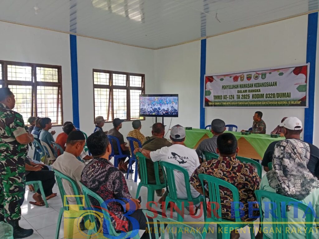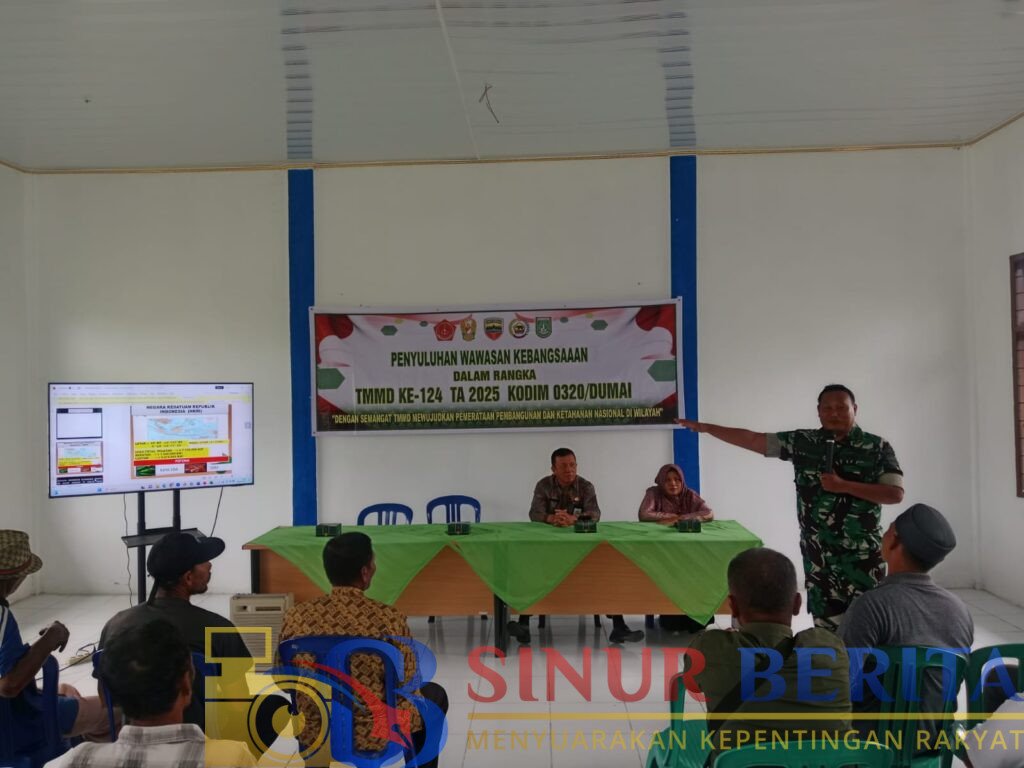 DUMAI || Program TNI Manunggal Membangun Desa (TMMD) ke – 124 Kodim 0320 Dumai di Kelurahan Bukit Kayu Kapur tidak hanya melaksanakan kegiatan yang bersifat fisik, namun juga kegiatan non fisik berupa penyuluhan Wawasan Kebangsaan kepada masyarakat yang berada disekitar lokasi TMMD digelar pada hari Jumat, 10 Mei 2025 di Aula Kelurahan Bukit Kayu Kapur.